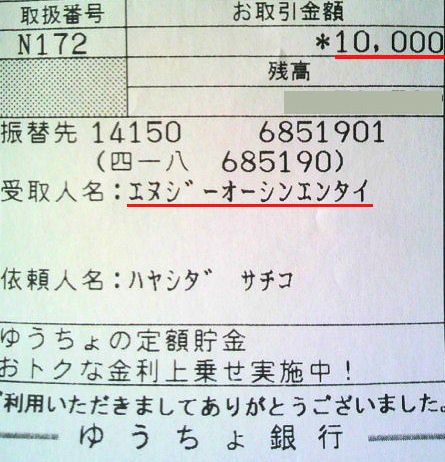 本日、復興支援NGO心援隊さんに寄付として以下の通り入金してきました。